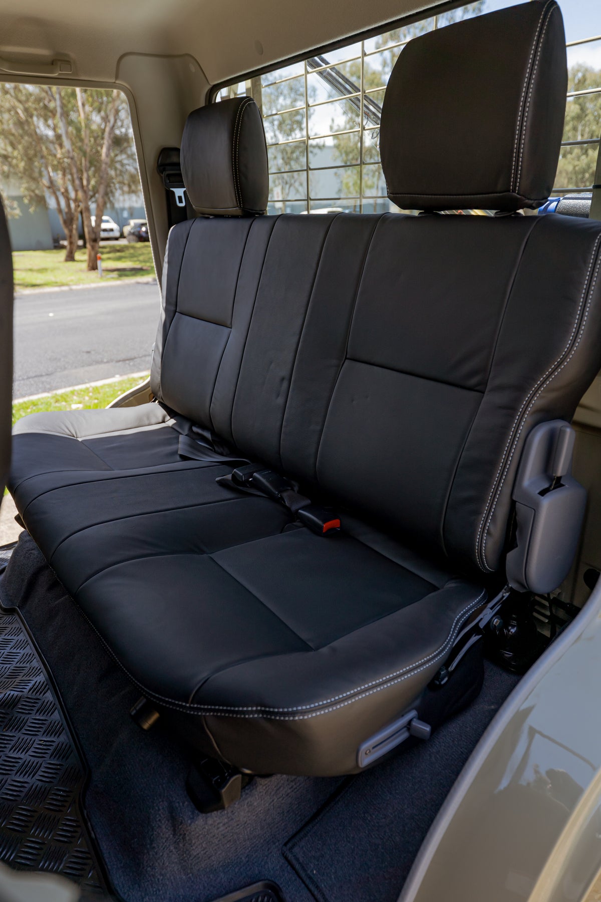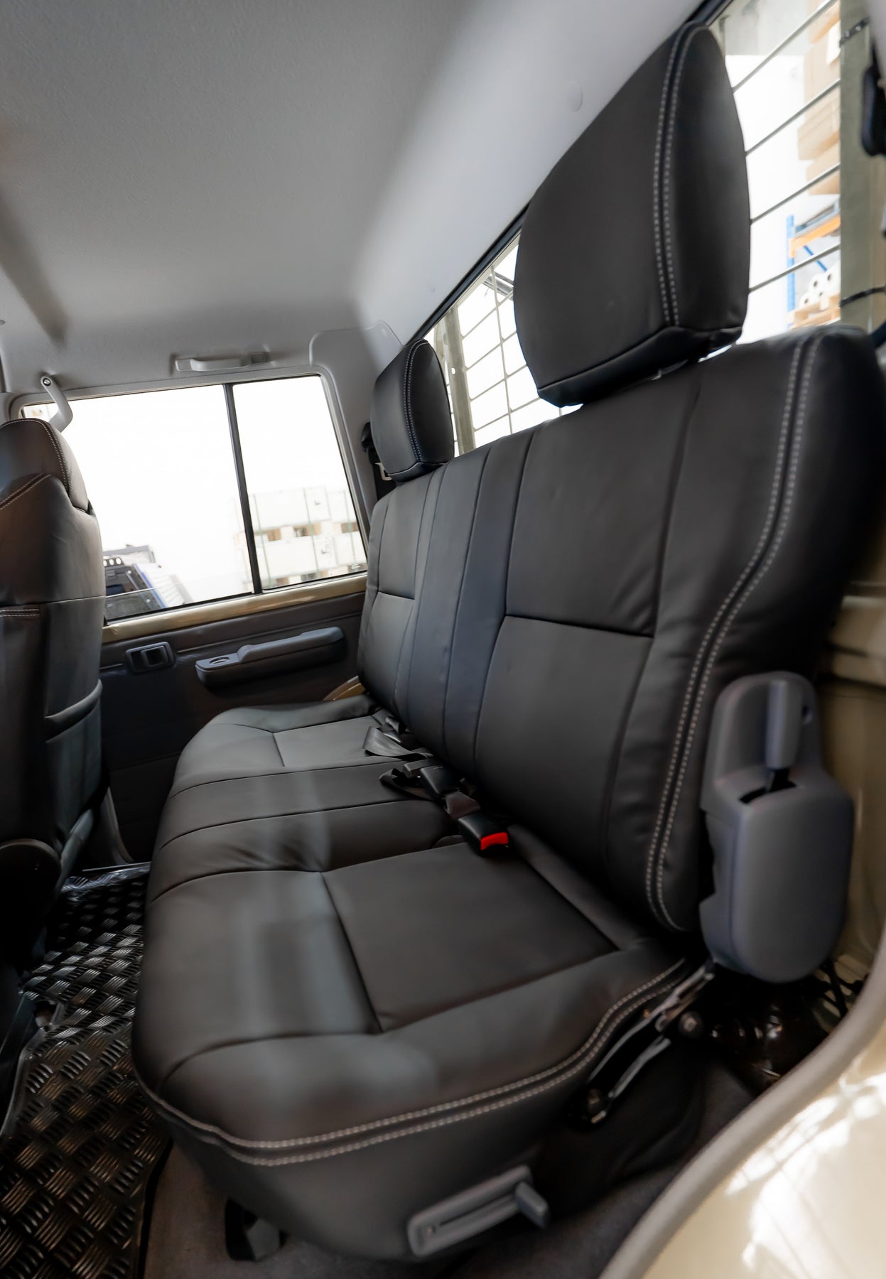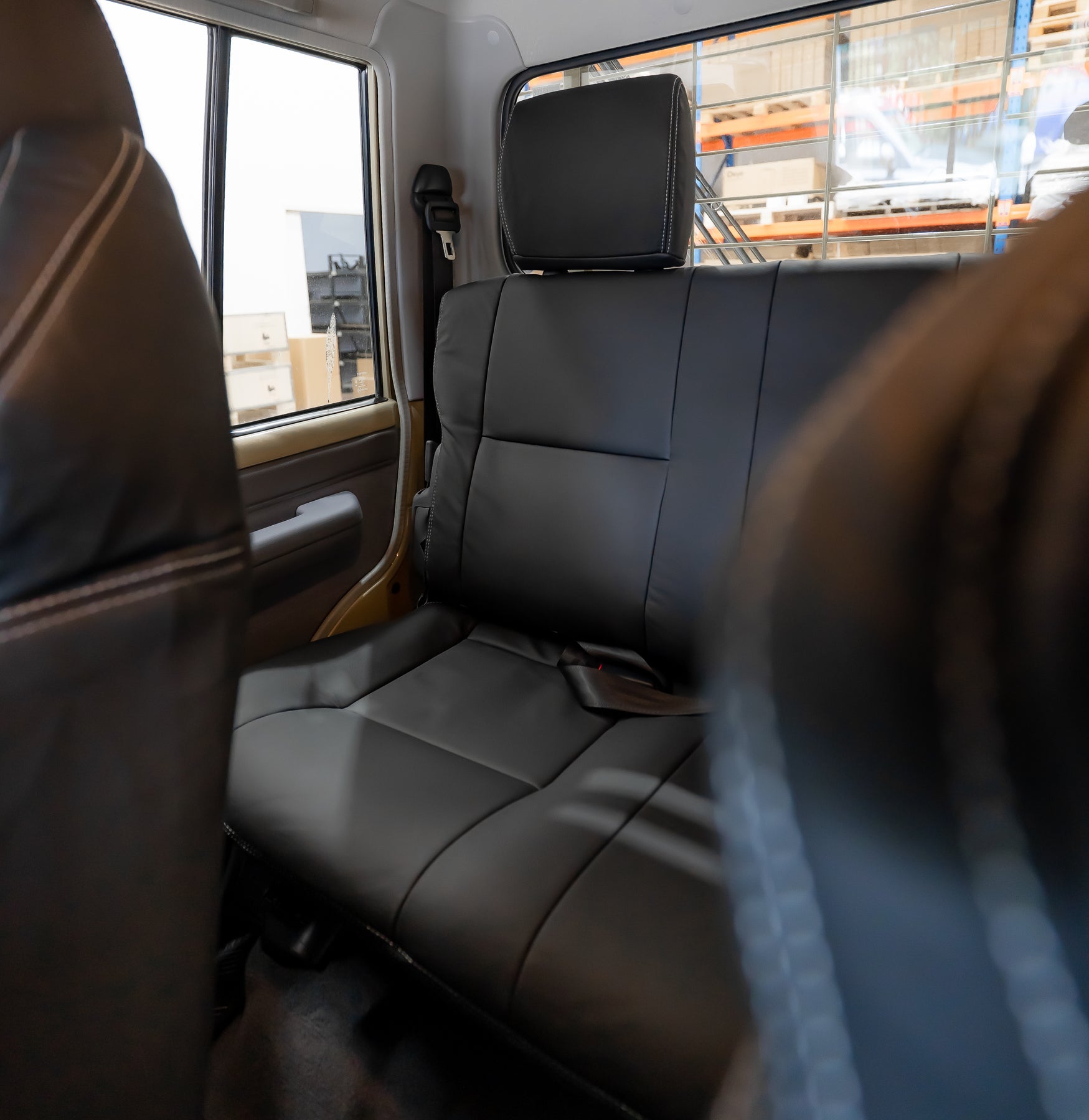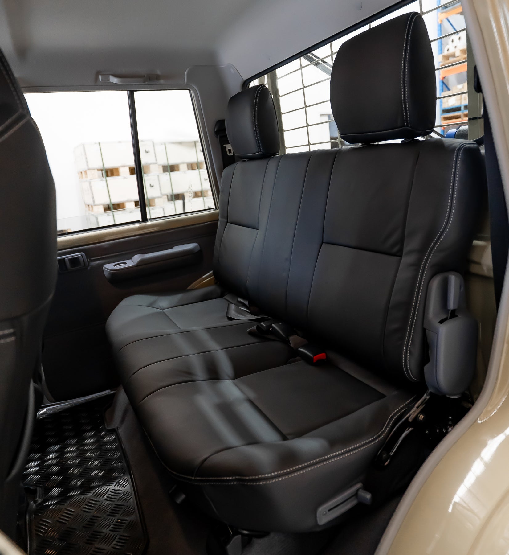Designed to suit 79 Series Dual Cab, these skins deliver a complete, premium finish with the same materials, stitching and colour profile as our front seats.